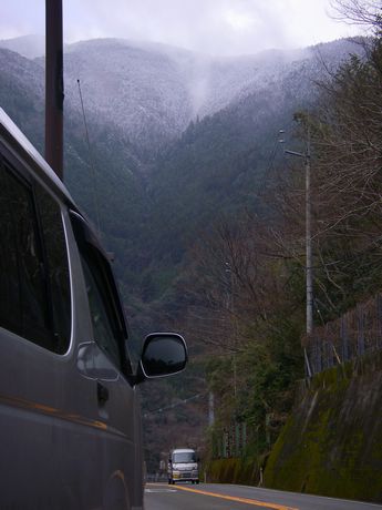 見えてる向こうの山は雪山で しかもめっちゃ雪降ってきたしぃ~~~~驚き~~