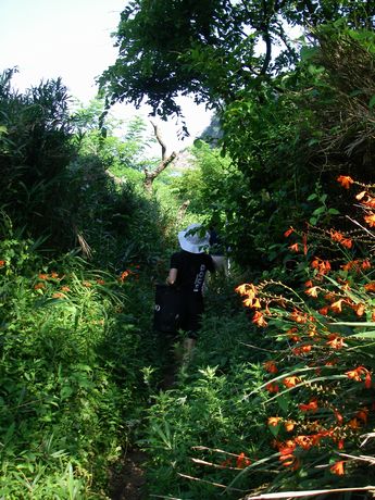 このジャングルのような山道を歩く事 約15分