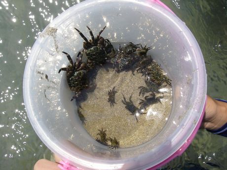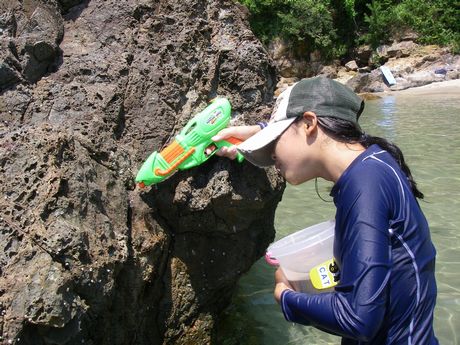 何をしてるかって??水鉄砲で岩の間に隠れてるアレを捕獲中