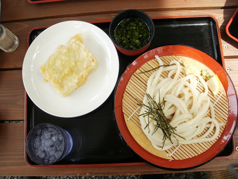 ここで、まめぱん師匠からのお勧めメールキャッチ。 三谷町の「わらく」 冷たい鶏天ざるがオススメやって!おお!どんぴしゃや!鶏天や!! 早速行ってみよ! お昼の混み時間前の11:30 ベストタイムや。